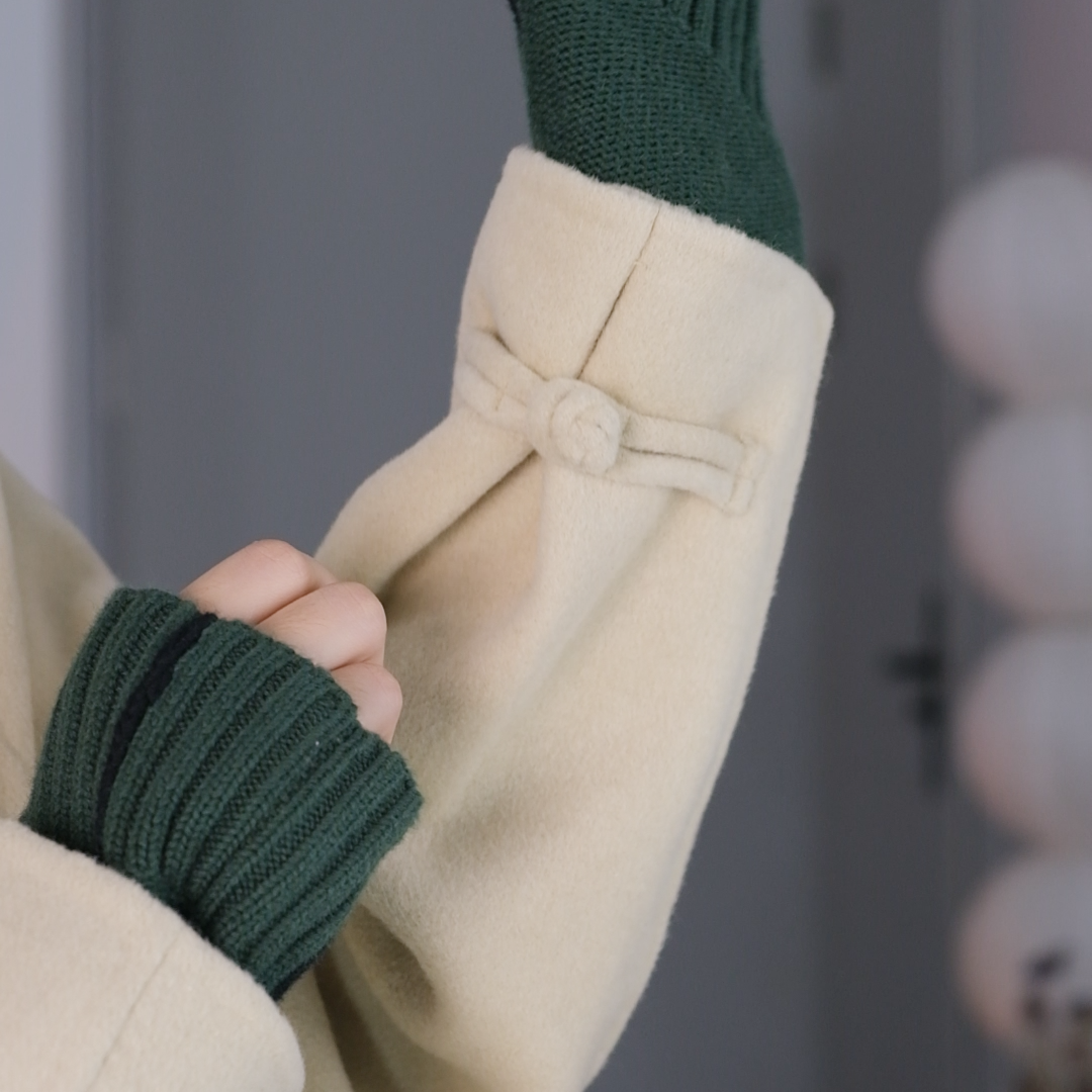 扣子做的是棕色,整体配色和款式很有法式复古感。