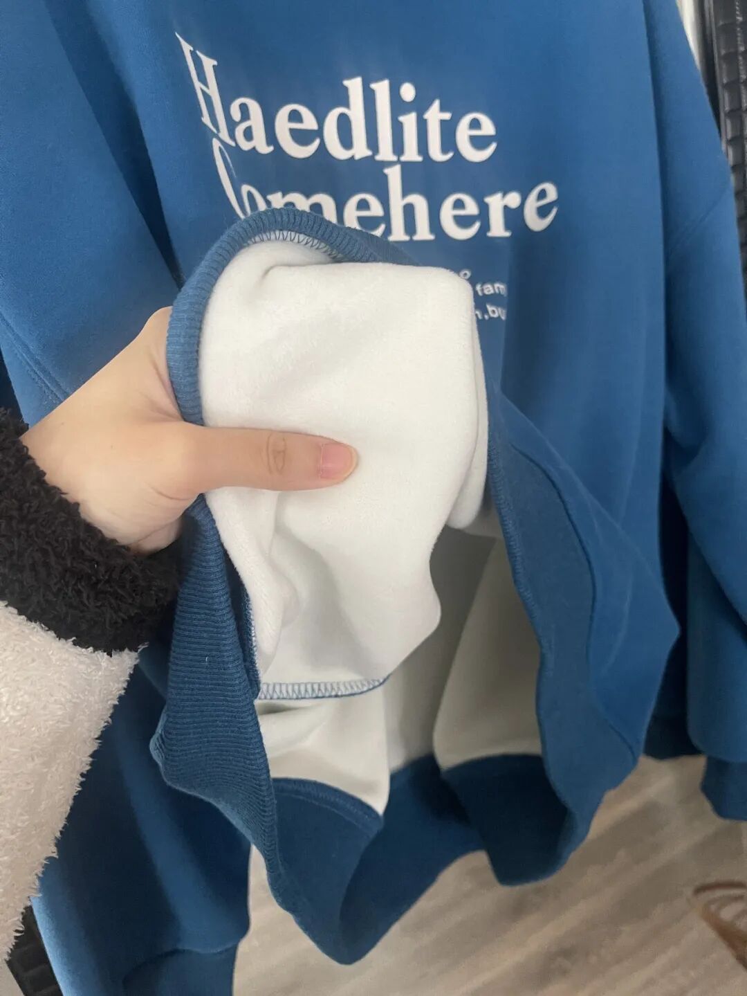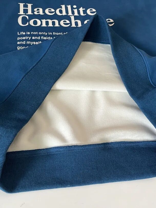 【谈感受】面料垂顺,不像一般加绒卫衣会泡泡的显壮,这件虽然宽松版型,但还显瘦的。