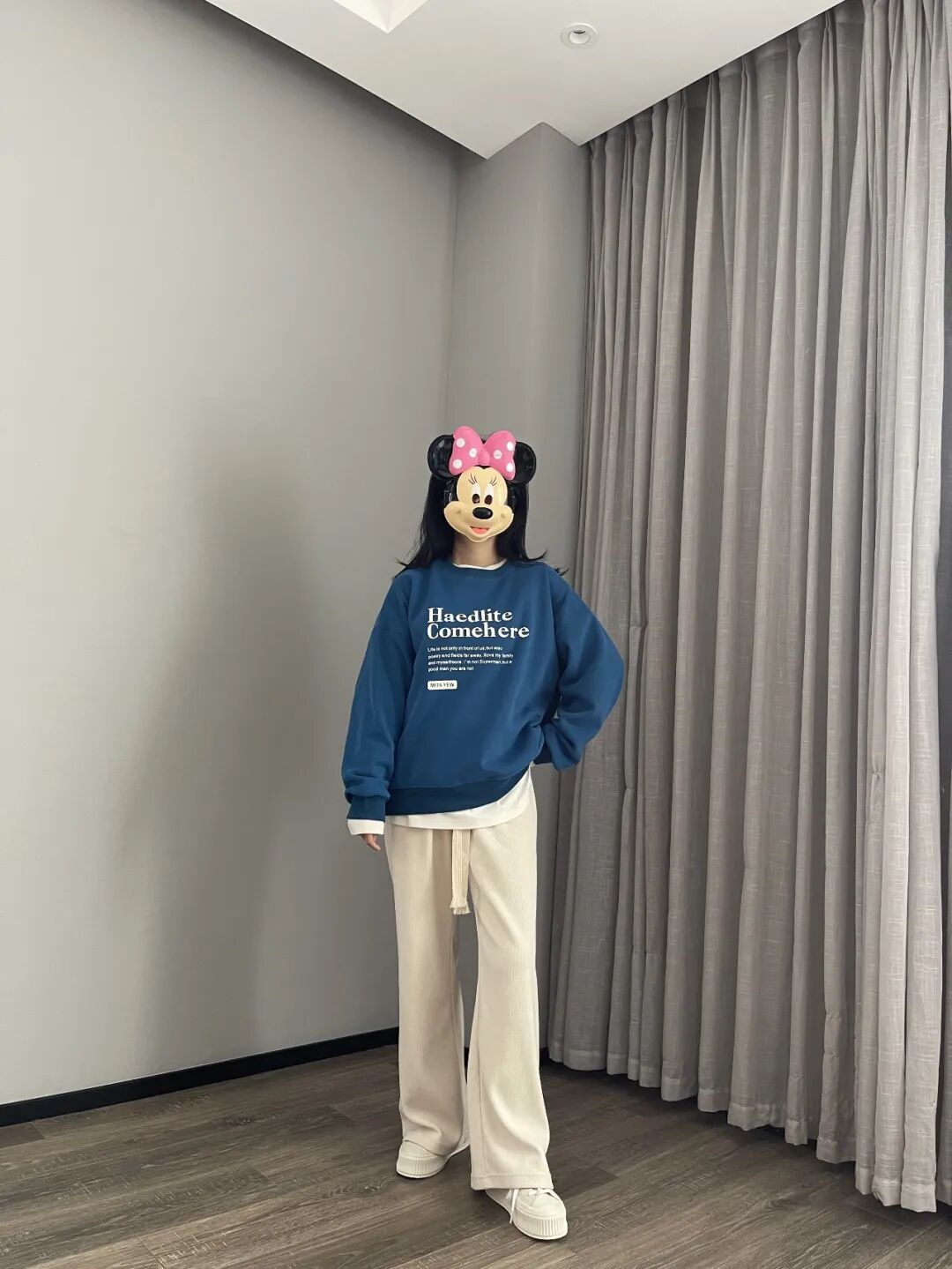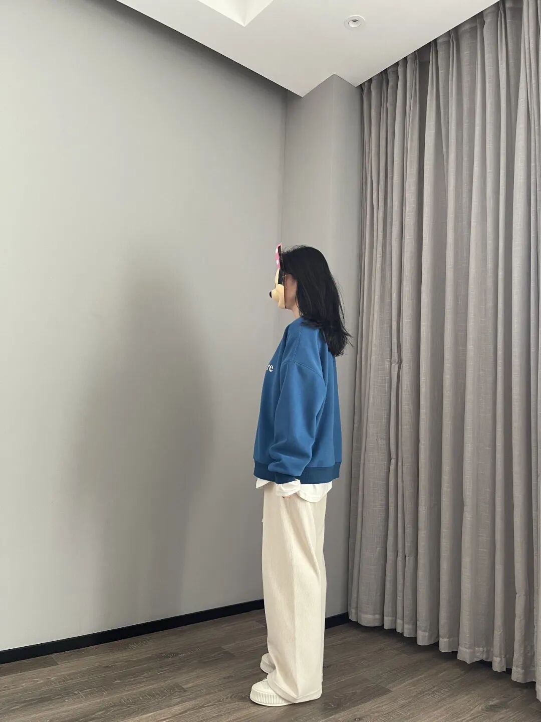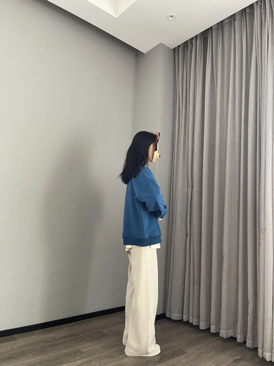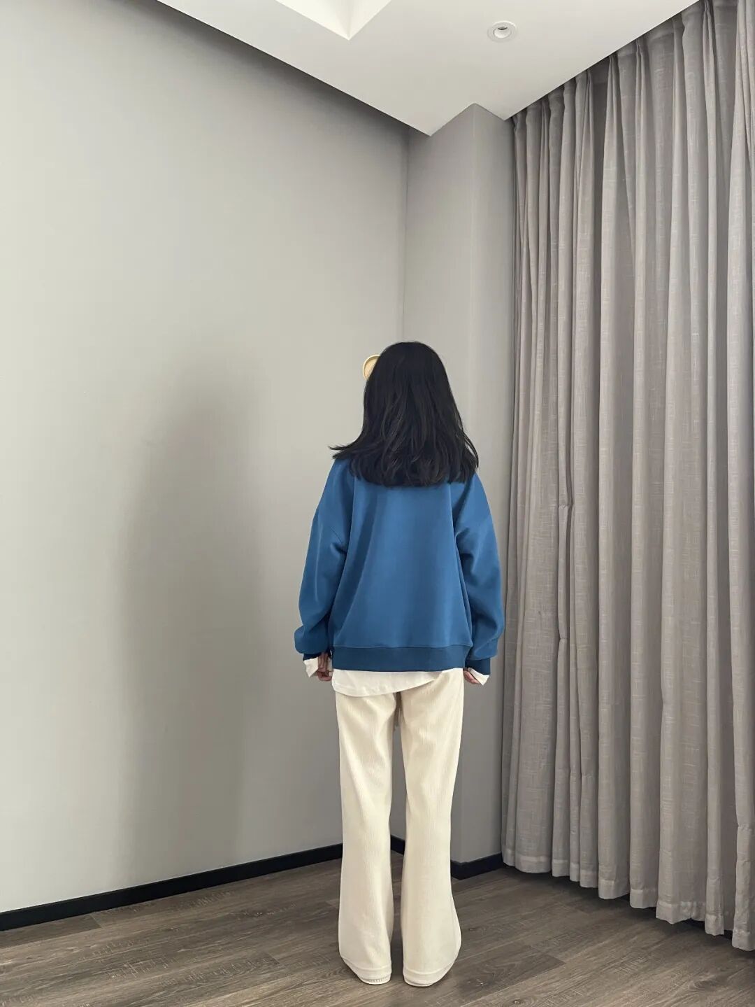 这件蓝卫衣,冬天里能让人眼前一亮,但不刺目。是我自己平时愿意穿出门的亮色,不会害羞有压力。