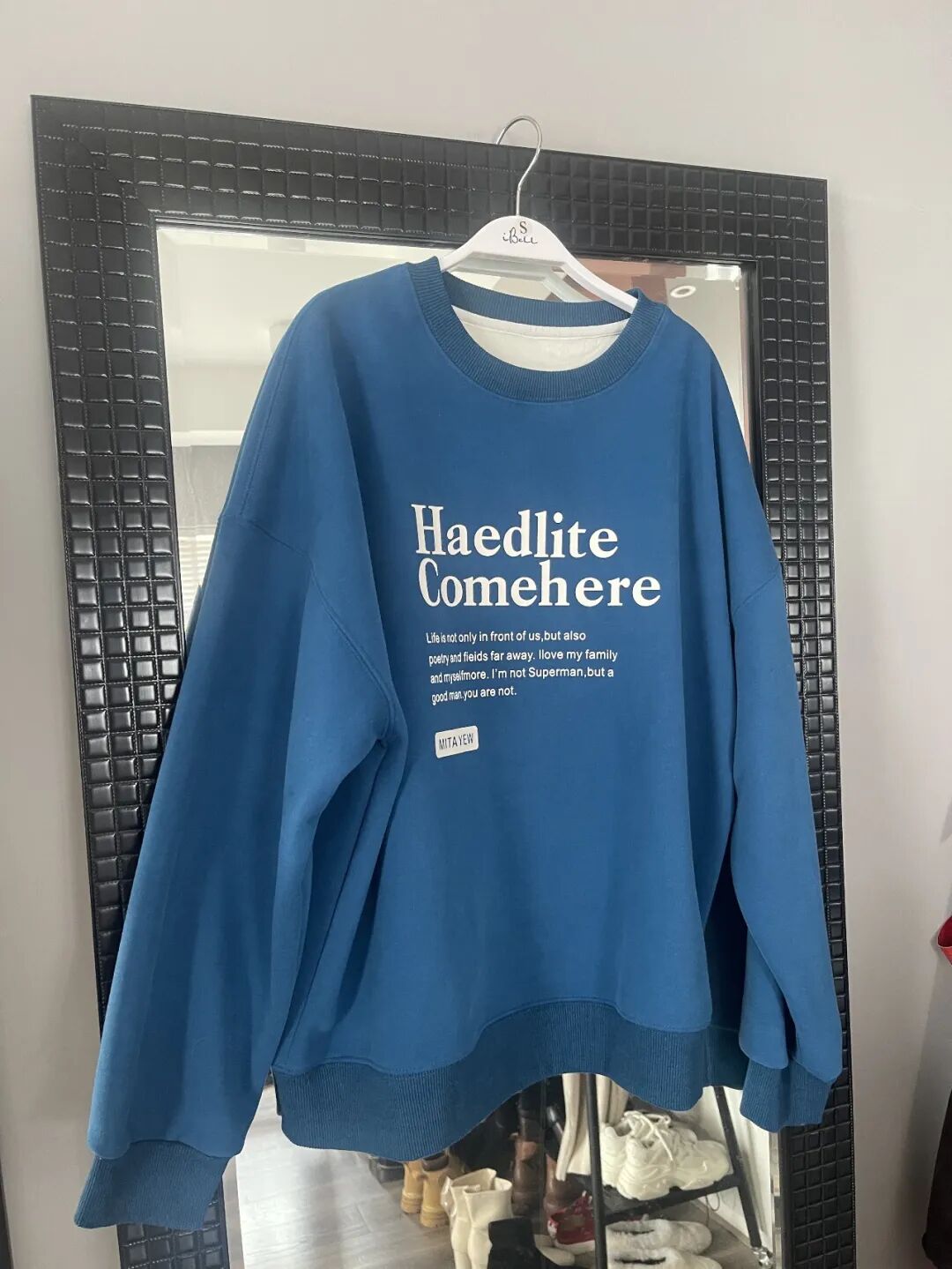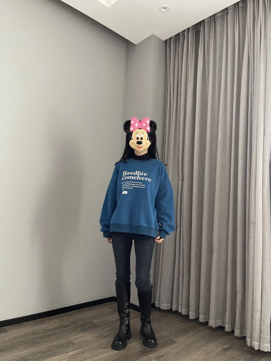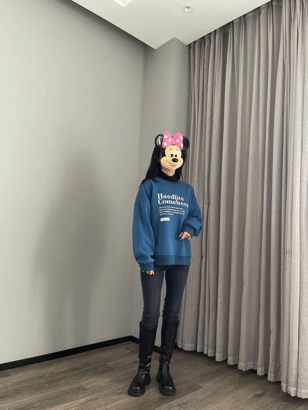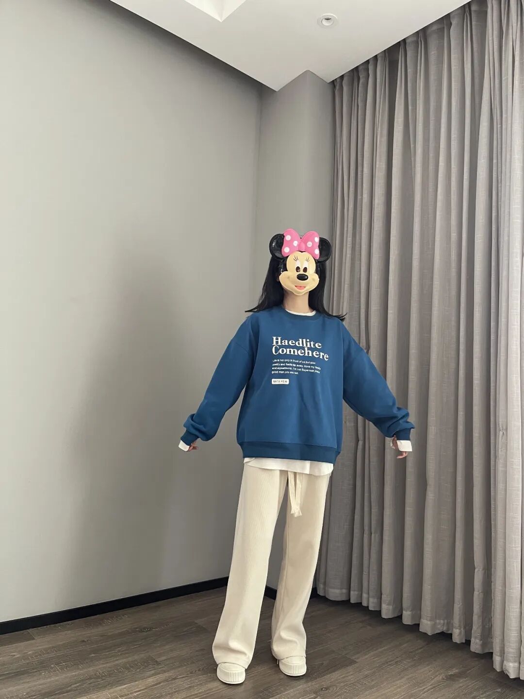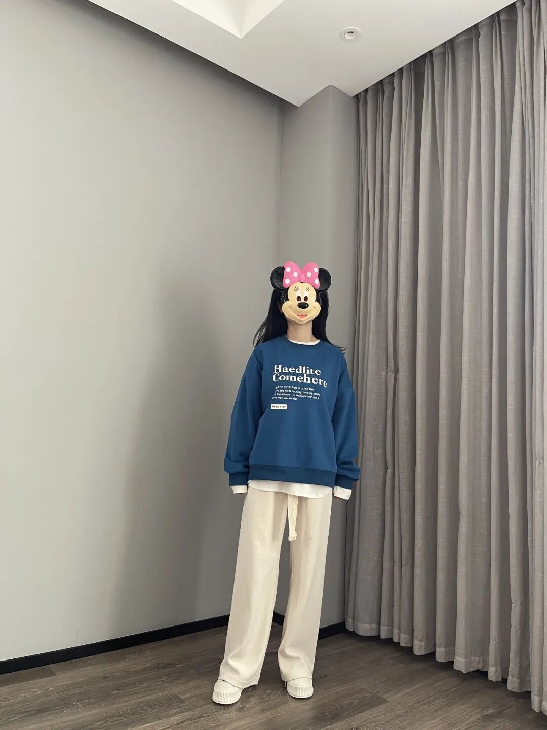 这件蓝卫衣,冬天里能让人眼前一亮,但不刺目。是我自己平时愿意穿出门的亮色,不会害羞有压力。