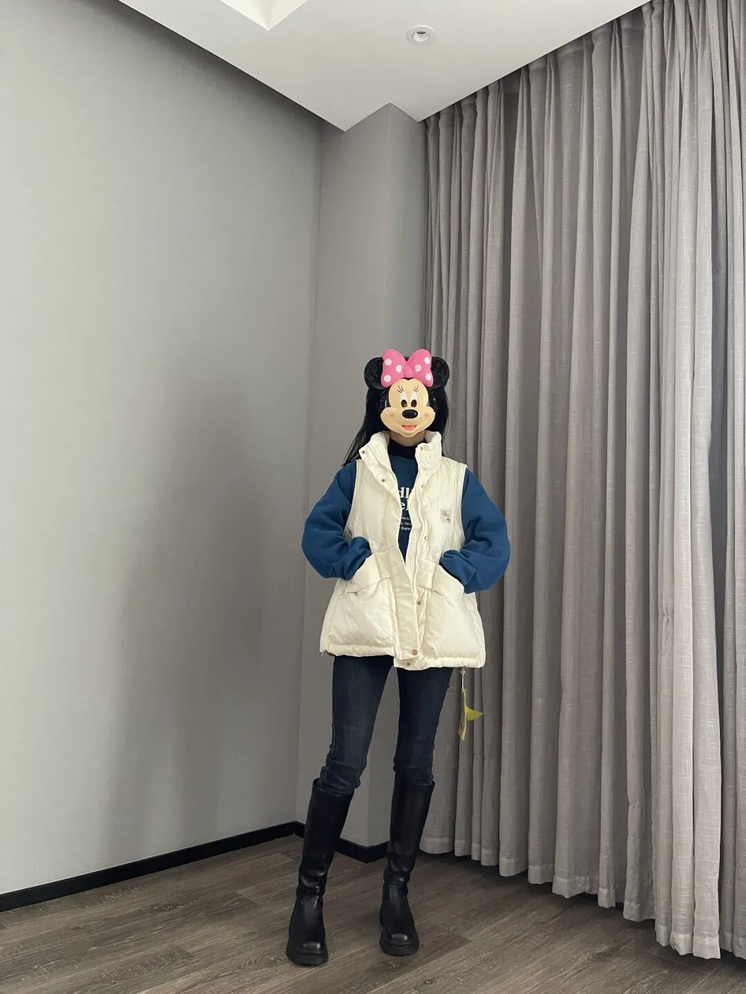 天冷了,外面再套个短款羽绒服,妥了。