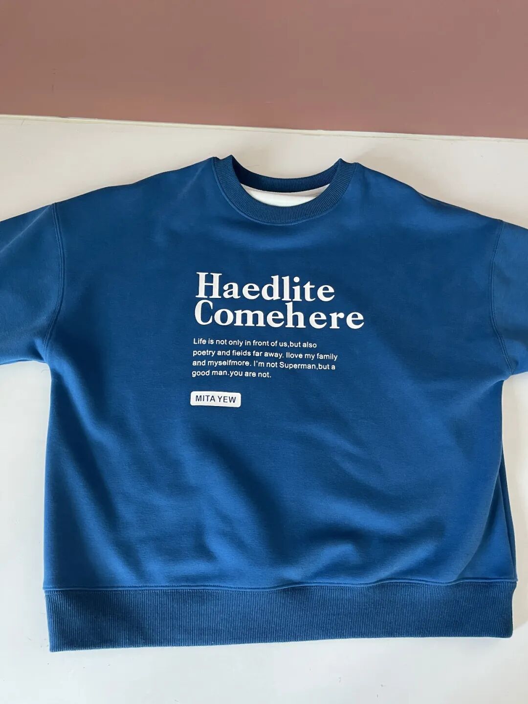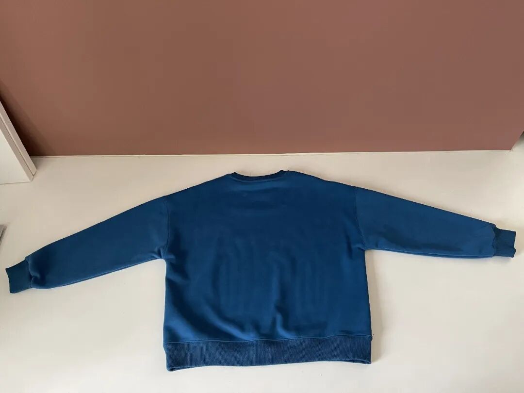 【优点】1)胸前的字母能起到隐胸的效果,对圆身大胸友好;2)说是克莱因蓝,但其实是调色盘里比较明亮的普蓝色,亮眼但不刺目,比较显白,很适合冬天叠穿在黑蒙蒙的外套里面提提色。