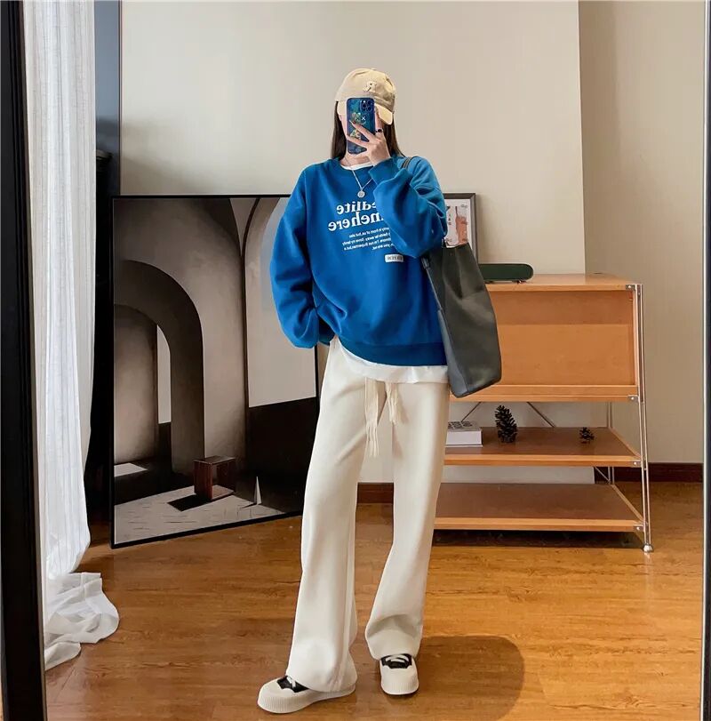 宽松适度的加绒卫衣,里面可以搭高龄打底衫,外面套羽绒马甲、羽绒服,都是方便舒服+减龄的。