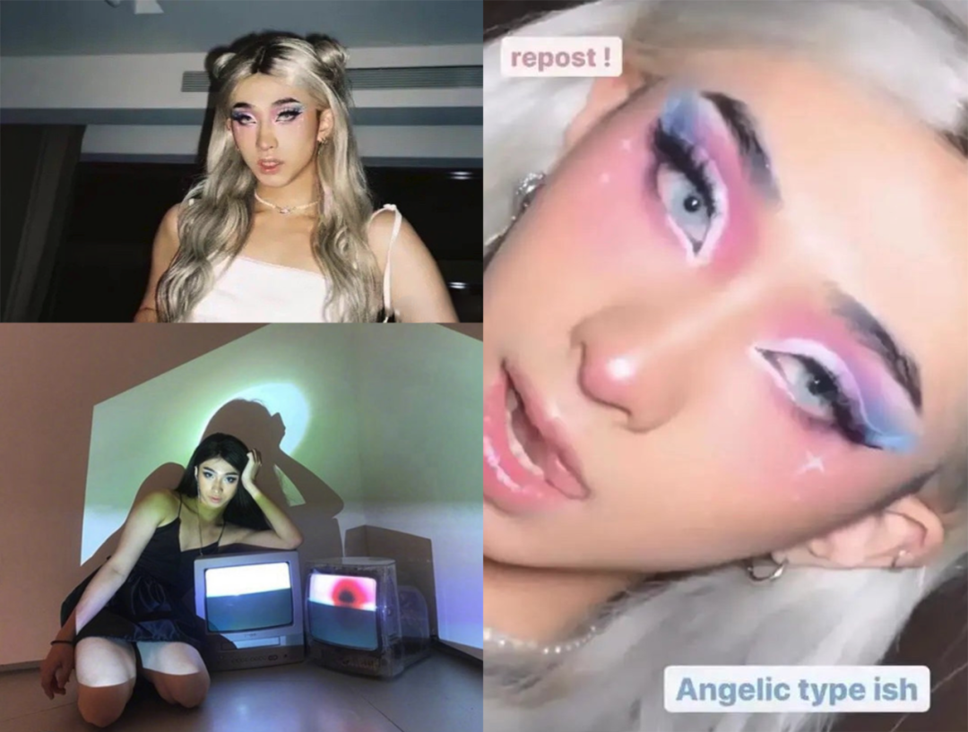 前阵子他发了一条短片,扮上银色假发、吊带裙,还化了精致的粉蓝眼影,乍一看右图,会以为是个化妆技术很好的小姐姐。