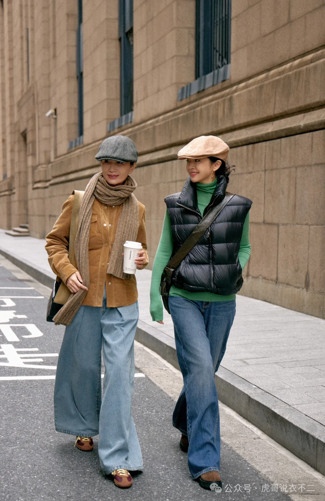 2、宽松长款大衣+修身下装