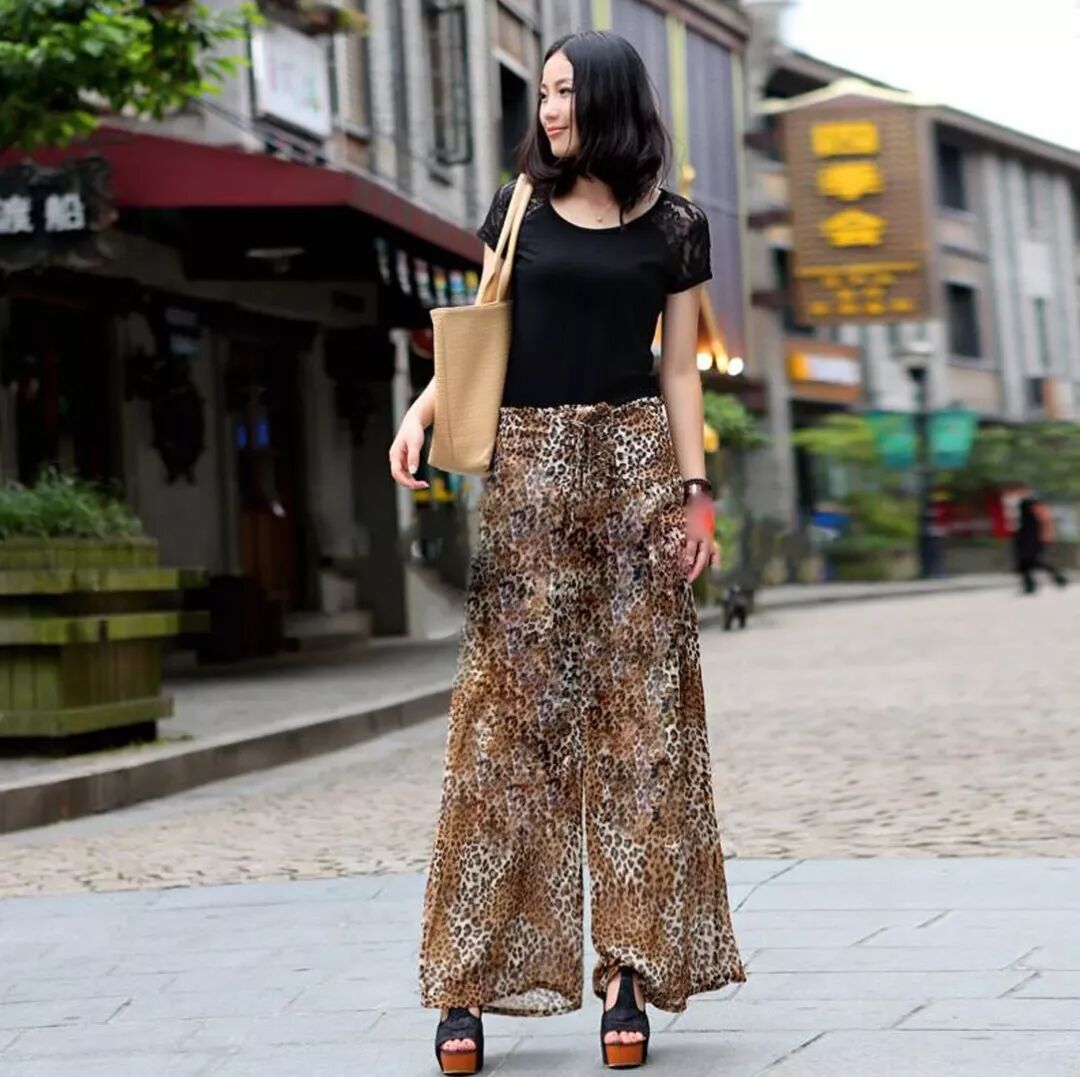 夏天将至,凉爽又舒适的阔腿裤肯定不能少,垂坠的雪纺阔腿裤清凉不缠腿,而且高腰超显腿长,上半身搭配一件简约的黑T,优雅大方,通勤逛街都合适。裤裙更遮肉,比裤子舒服,比裙子方便。黑T搭配花纹裤裙和高跟黑凉鞋,是高级又青春的味道,魅力又耐看。