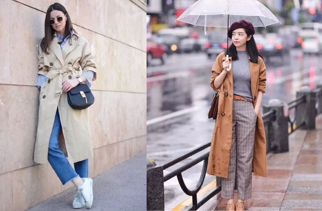长款风衣比起普通长度风衣,休闲味道更强一些,也更显瘦。里面搭一条蓝色牛仔裤,脚踩小白鞋,干练气质就打造完成了,看着就让人心情大好。灰色紧身T搭配格子阔腿裤,减龄的同时还保留了质感,外搭卡其色长款风衣,腿长一米八不说,整个人都显得知性温柔。