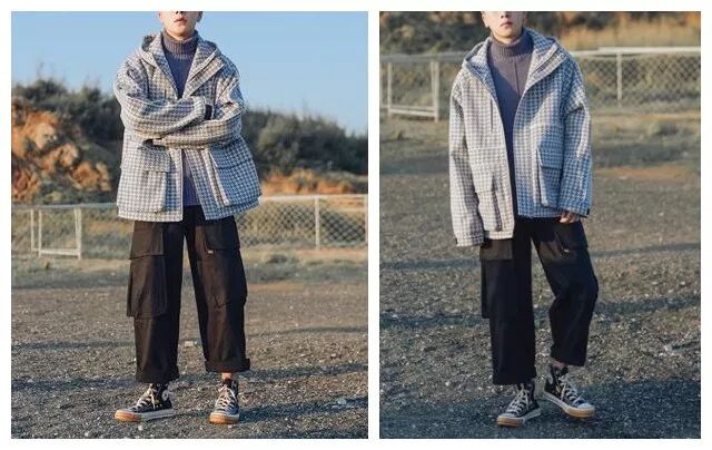 其实在男生的穿搭中,要种草一些可搭率比较高的单品,工装裤是男生最值得“投资”的时尚单品,搭配格子外套,瞬间让你秒变型男一枚,这么百搭的单品,相信每个男生都可以驾驭的吧。再穿上一双高帮帆布鞋,想不帅都难哦~穿起来!