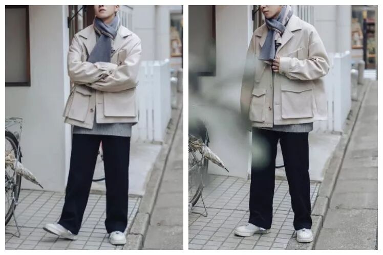 冬季里,男生如何穿搭引起众人的目光注意呢?不妨尝试下这样的搭配,内搭毛衣保暖又点亮整套造型感,与工装外套搭配,散发出淡雅的男性魅力,系上一条灰色的围巾,彰显出一种不凡的穿搭品质,轻轻松松体现出男生的帅气感,酷极了。