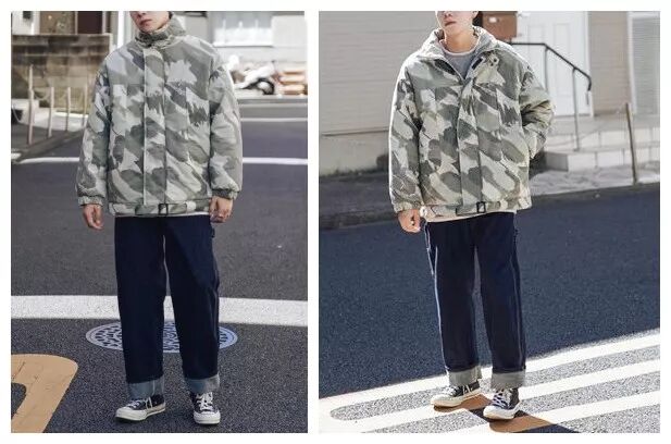 迷彩服在男生的服装单品里一直都很流行,这样的迷彩绘图元素越简单越有范,搭配牛仔裤,不小心就把男生身上的帅气感原本性地透露出来了,整体看上去很有暖和度,像冬季这样寒冷的季节,这么穿绝对保暖度很强,单调的冬季这么穿活力感十足!