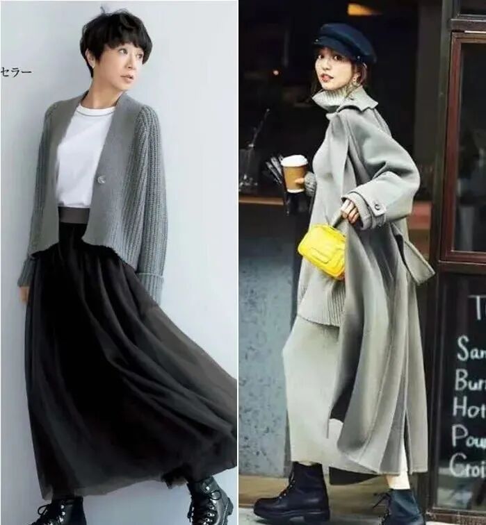 当然还有九分的阔腿裤,要是实在想穿紧身裤的话,在外面可以套一件长款的外套,对腿型的缺陷有掩饰的作用。▼