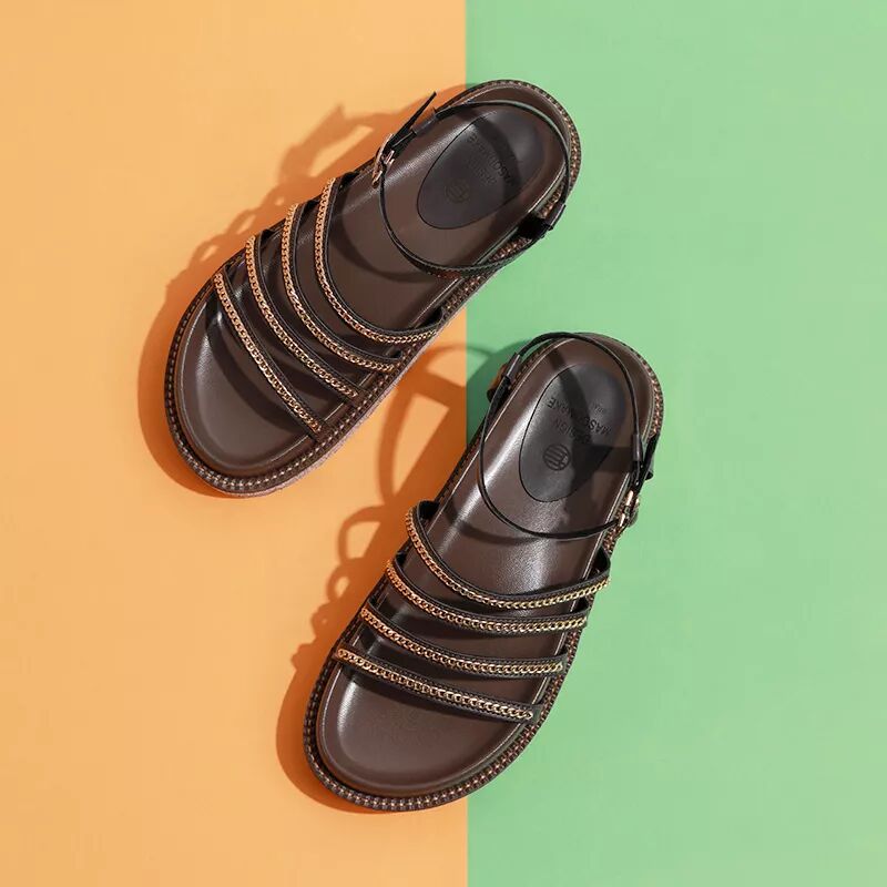 比起去年绑到膝盖的款式,本季流行的坡跟平底脚裸罗马鞋更加舒适,靴子感的轮廓设计看起来酷感升级更时髦!不管瘦腿胖腿,只要选好款式,都能把罗马鞋穿出交出一套完美的搭配,你可以进店根据你的自身情况来找你的尺码。