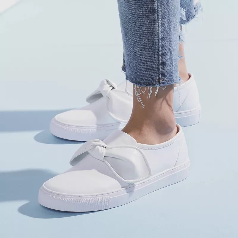 人人都爱小白鞋,因为它舒服又百搭,如今它更是时髦必备,越来越多地出现在街拍中。和白球鞋最搭的单品是什么?很多人的答案会是牛仔裤。选择一条修身的九分牛仔裤露出脚踝,会更显腿长,你可以选择自己的尺码。