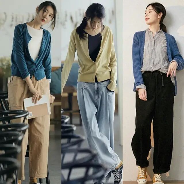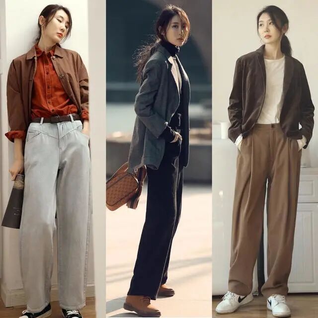 作为裤子界的佼佼者,阔腿裤的搭配功力那叫一个绝。跟正儿八经的西装搭配,瞬间都能让西装变得时髦有个性,让你从此不再畏惧穿西装!社会有预感,西装+阔腿裤绝对火到大街小巷的宝宝们都爱这么穿。黑色的西装,虽说或多或少都有些显沉闷,但只要配对内搭和裤子,一样可以穿得很时髦出众。西装的版型和长度都设计得刚好,中短的长度,高矮个子都能驾驭。若你想将这种黑西装穿出休闲感,那么可以选择t恤或阔腿裤相配,再加上一双运动鞋,很减龄又不失青春。LOOK2:针织开衫+牛仔裤