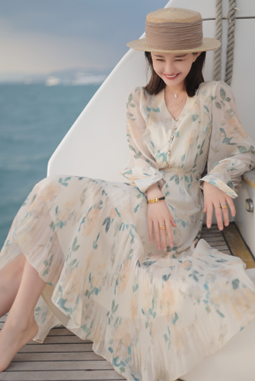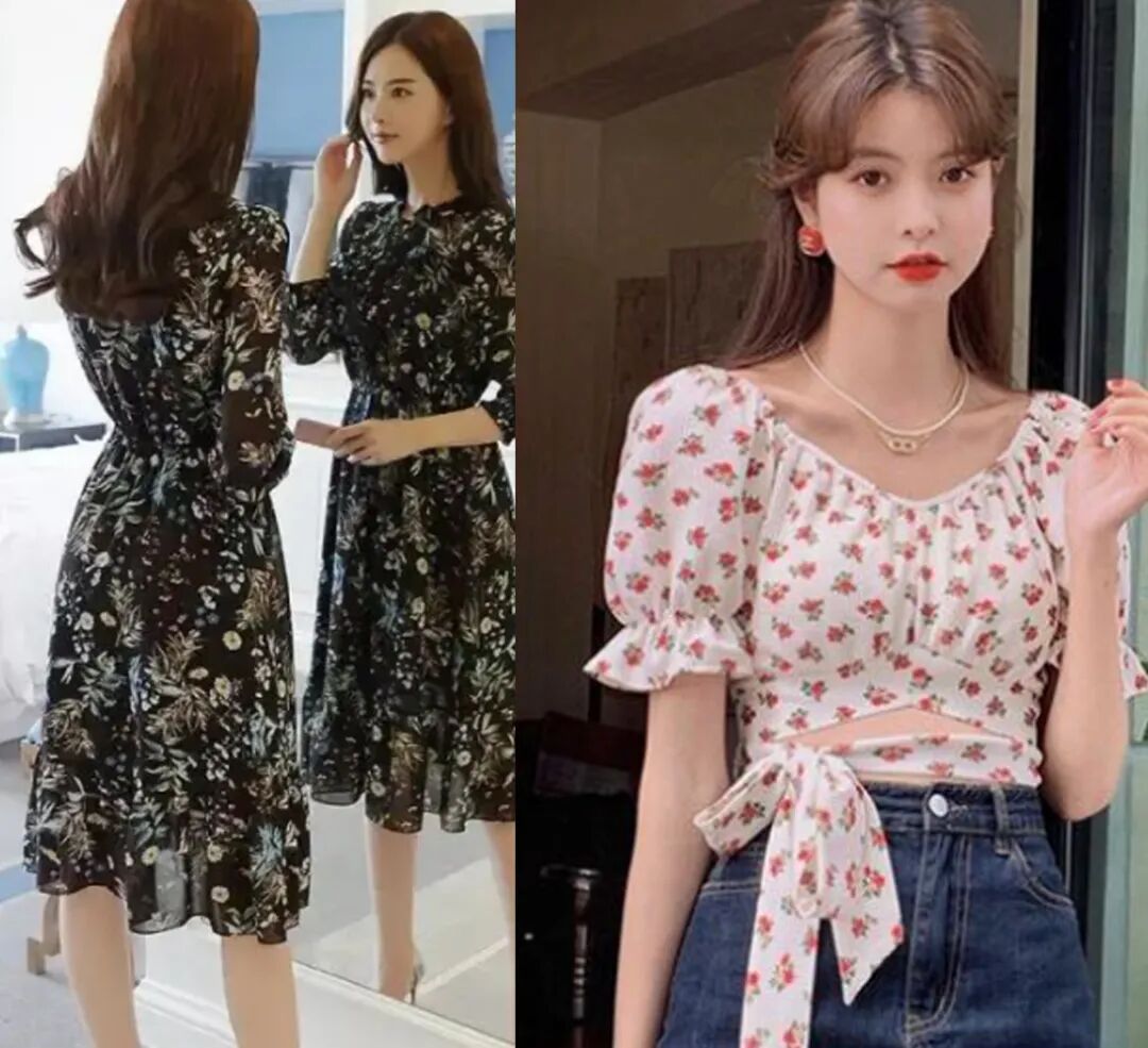 碎花单品要记得选择碎花密度适中的款式,太密集的碎花比较显老,而且搭配出来也很难有高级感,密度适中的碎花压迫感很低,更适合时尚装扮。