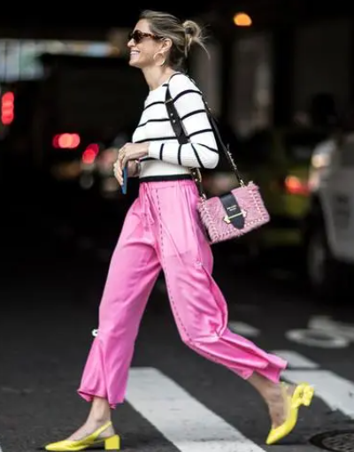 亮度较高的色彩尽量远离脸部,亮度较高的颜色比较容易显黑,如果对自己的肤色没有自信,可以把亮色单品放在下半身,这样就相对安全很多。