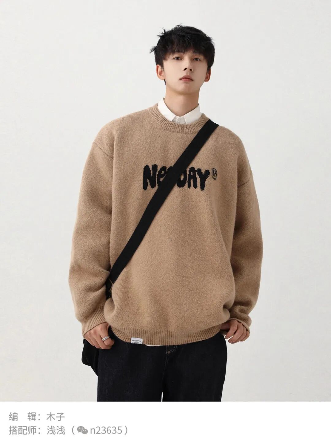 秋季男生毛衣的颜色搭配相对来说比较难把握,以黑、灰、蓝、米色,这些颜色比较百搭也比较好搭配。