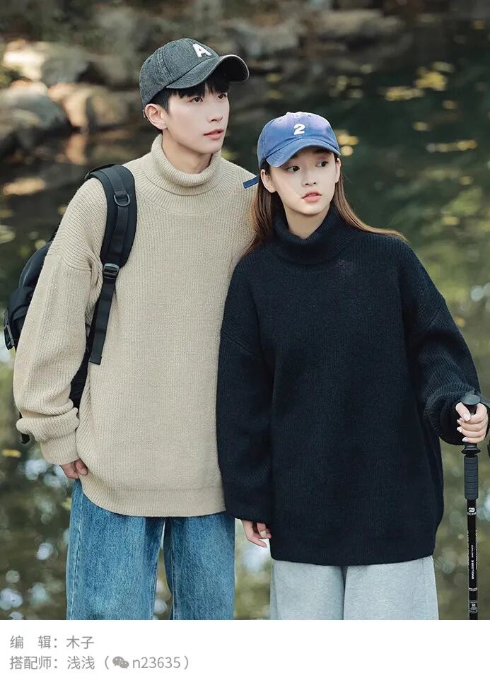 如果肤色暗,可以选亮点的,肤色白可以选任何颜色的毛衣款式,也可以全身组合纯色系列。