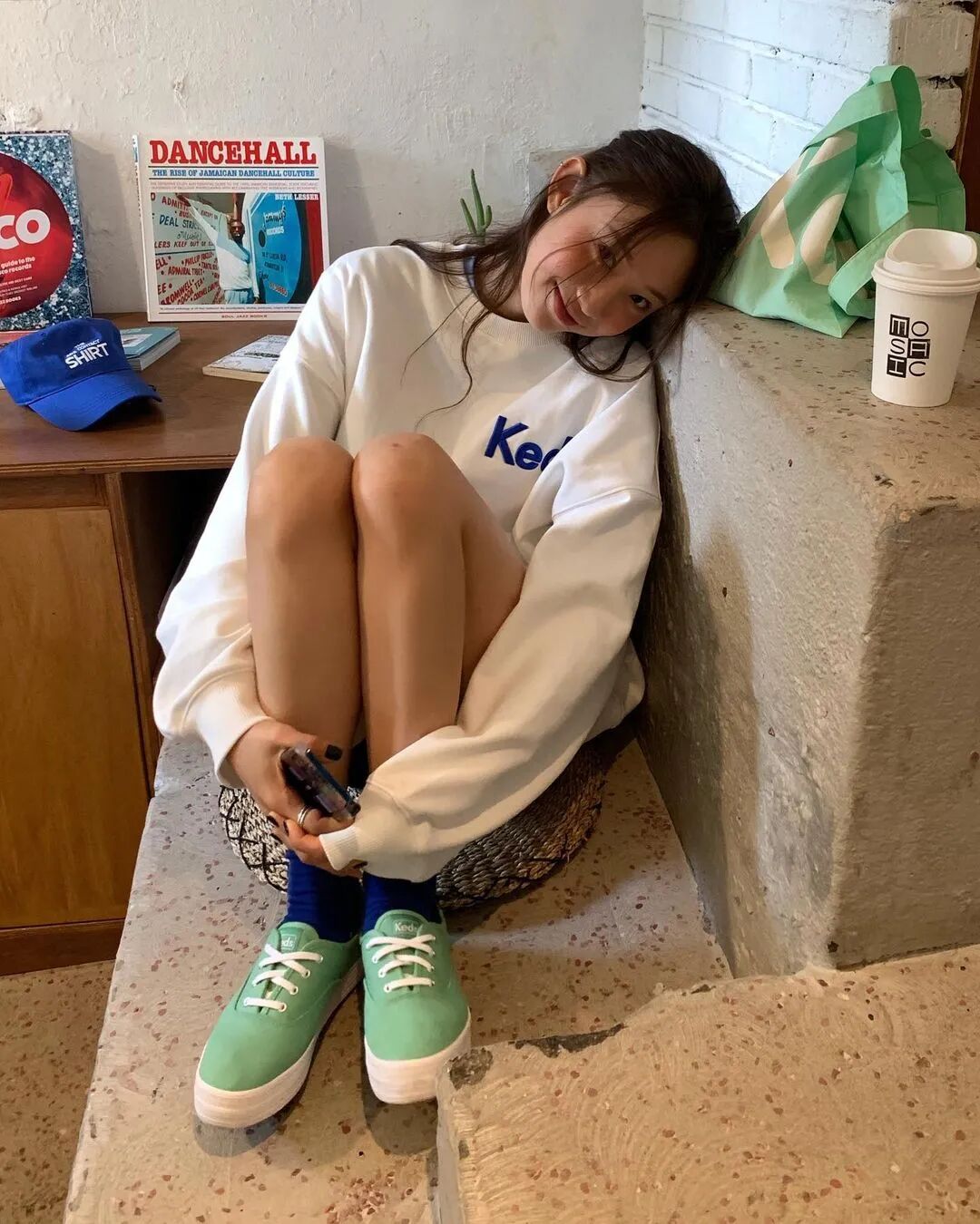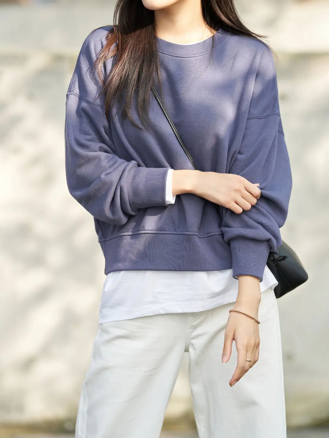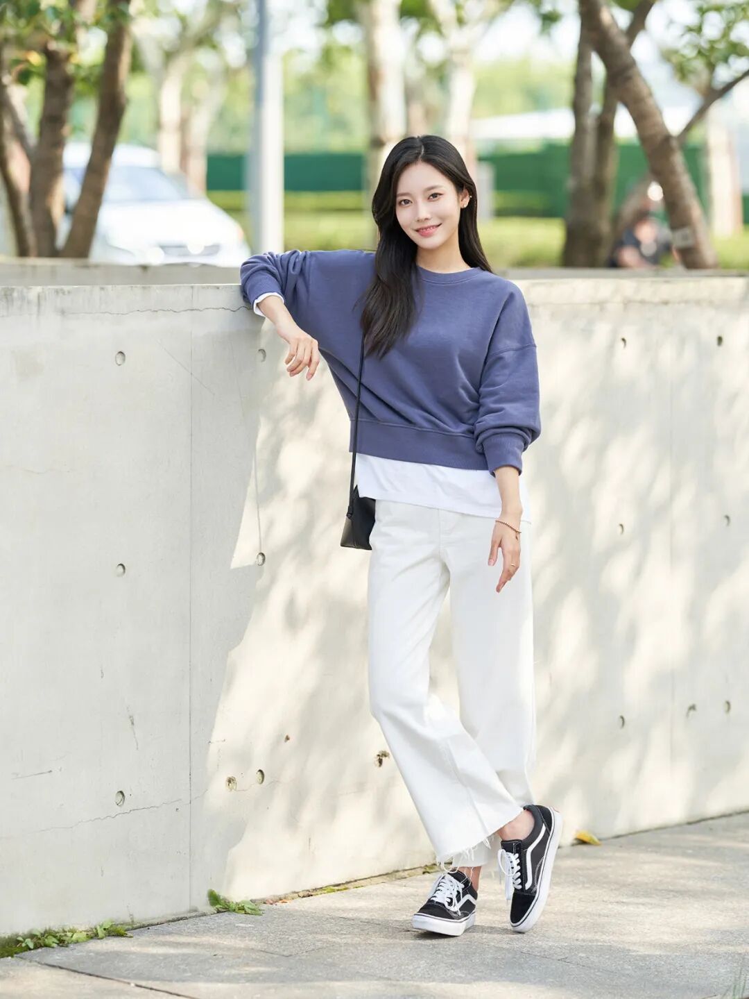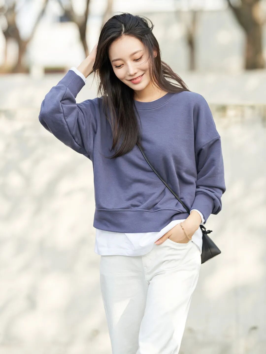 博主@金熙真Heejin 挑选这件纯色 运动衫,简约落肩的版型能反馈与穿着者本身,不花哨,不抢眼;纯色不会让人觉得审美疲劳,还容易搭配。二者兼顾得当,低调且高级,给人沉稳之感。