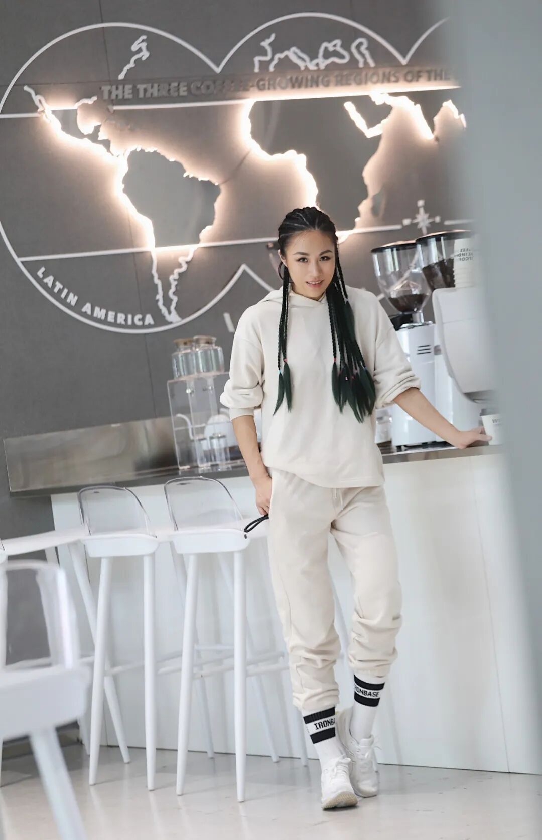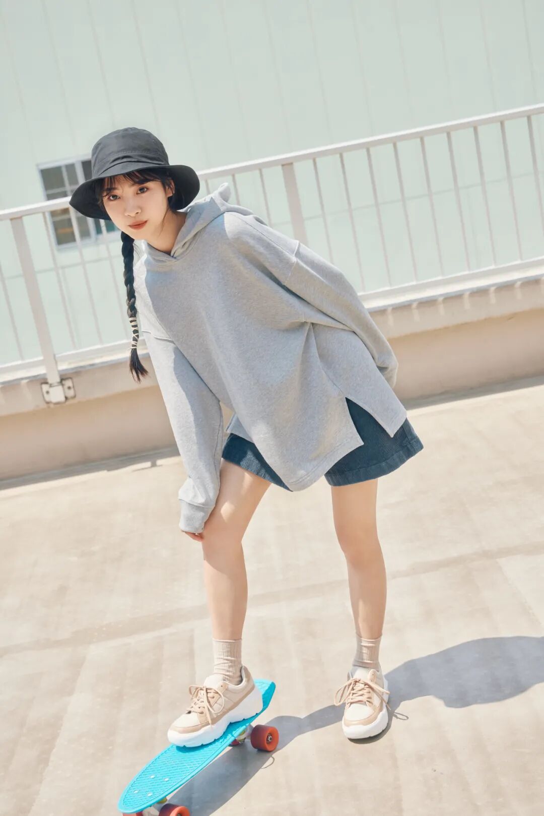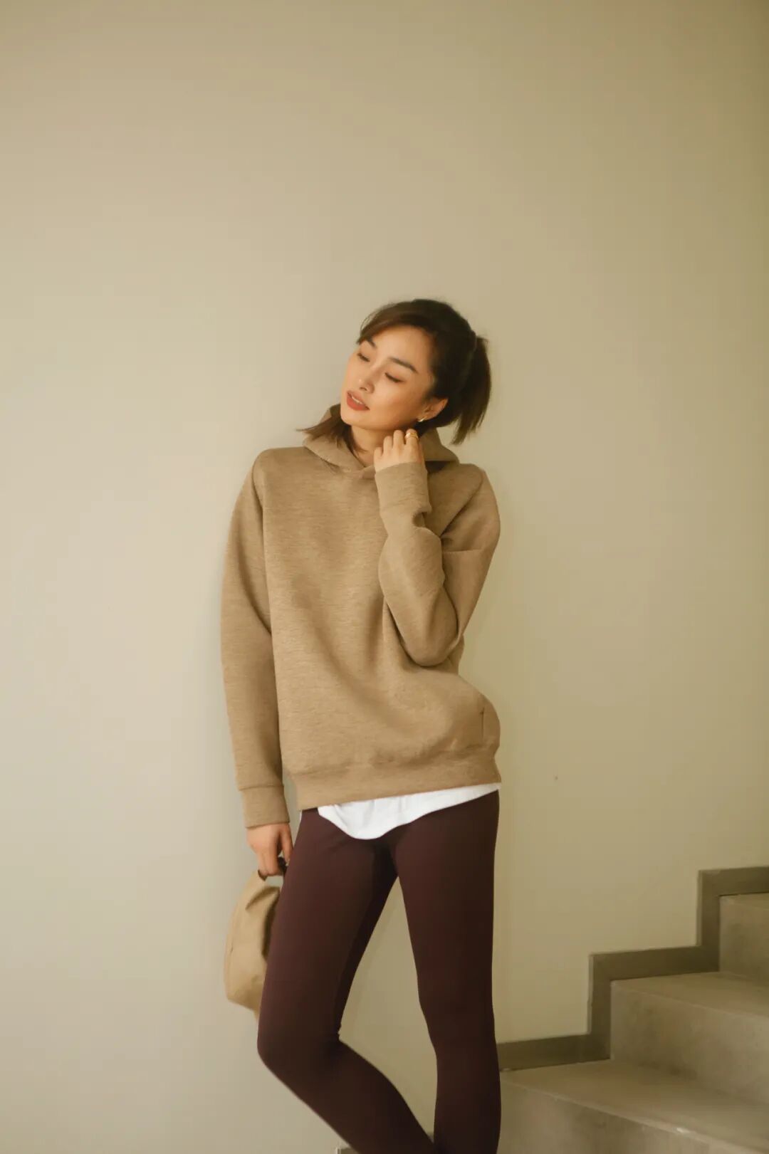 博主@GIGIG 身上休闲连帽卫衣不仅在身宽和肩宽调整成适合亚洲女生的廓形,侧边下摆前短后长的分叉设计丰富了服装线条的变化,确保衣服的版型修饰身形比例,更增加一层舒适弹力性能。
