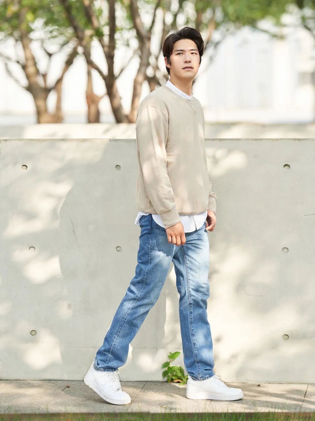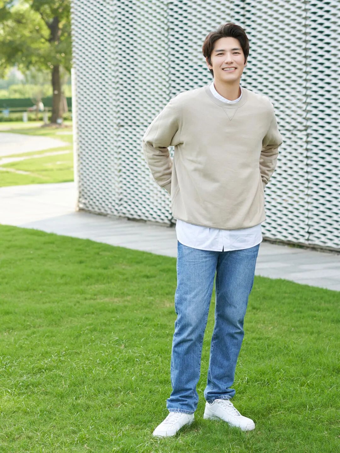 博主@金正山 身上的休闲卫衣既承载着弹性柔软的质地也兼顾面料透现的原生光泽质感,大大提高提升穿着体验,和休闲直筒牛仔裤的组合非常适合初秋。