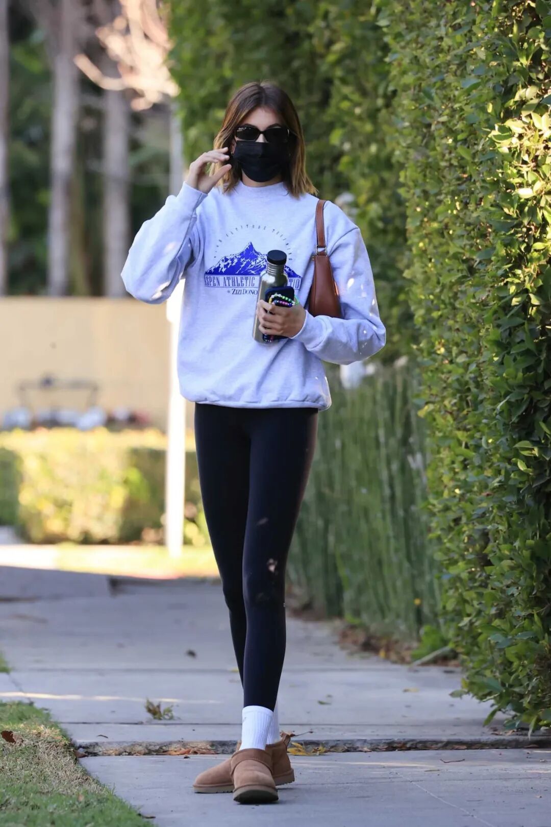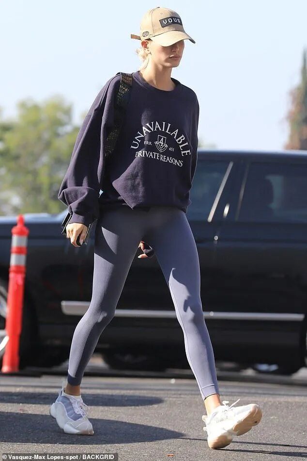 「印花卫衣」+「leggins」是欧美超模的“上班服”。「上松下紧」,在视觉上显腿长,还能让整身衣着张弛有度。