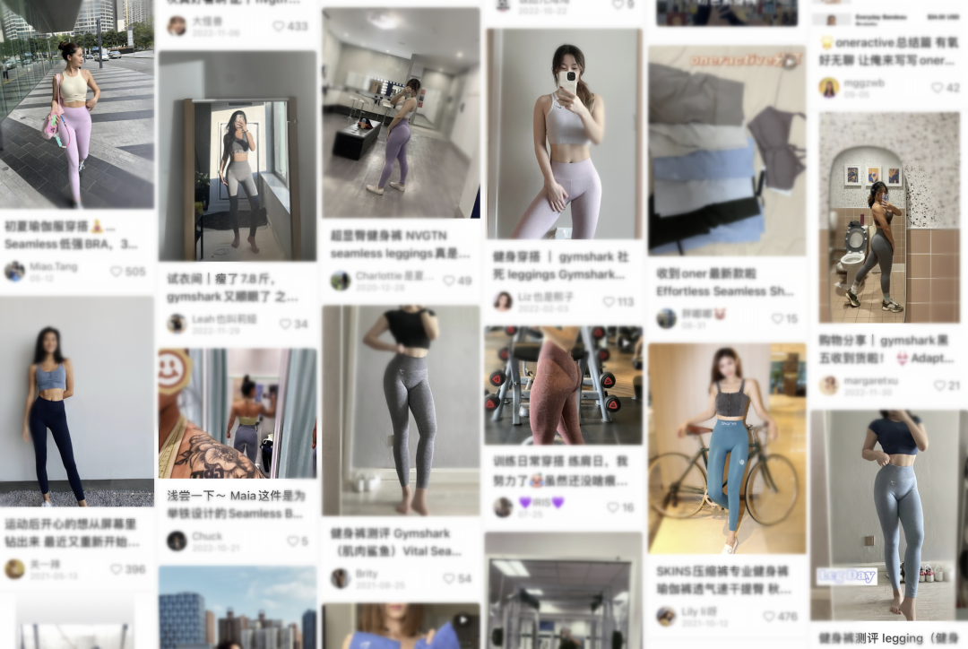 随着消费者对运动服式功能和舒适度要求的提高,品牌不仅在纱线面料上做升级,无缝工艺制作的运动健身服也受到了青睐,无缝运动服的市场正在逐步扩大。目前在社交平台小红书上搜索“无缝运动服”相关的内容分享笔记已有数万条。根据中国国际金融股份有限公司 2022 年 6 月的研究报告,无缝需求景气度高,市场空间大,无缝服饰下游以运动服饰及内衣为主,均为服装高景气的子品类,中国无缝贴身服装 2013-2022年产量复合年均增长率为 18%。通常无缝产品生产的Legging在腿部内侧以及裤子和腰头之间有缝线存在。
