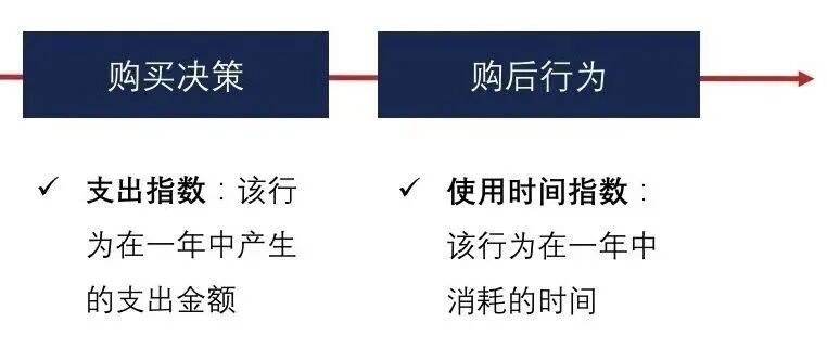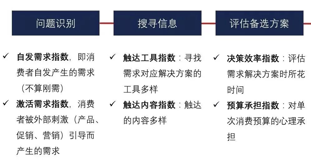 我们以全流程的行为拆解为参考,以指数为基础,评估消费决策行为的商业价值: