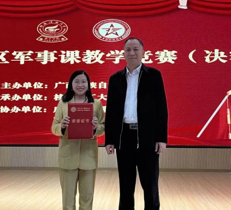 我校辅导员在2023年全区军事课教学竞赛(决赛)中荣获一等奖。12月12日—13日,2023年全区军事课教学竞赛(决赛)在南宁举行。经过两天激烈角逐,我校体育与健康学院教师、专职辅导员陈仙,荣获本次教学竞赛一等奖。