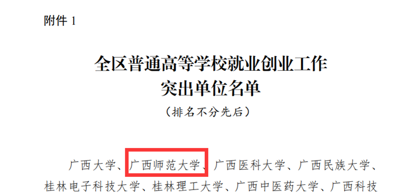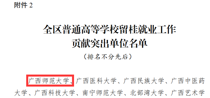 我校荣获“2023年全区普通高等学校就业创业工作突出单位”和“全区普通高等学校留桂就业工作贡献突出单位”荣誉称号。根据广西壮族自治区教育厅下发的《关于认定2023年全区普通高等学校就业创业工作突出单位和留桂就业工作贡献突出单位的通知》,我校被认定为“全区普通高等学校就业创业工作突出单位”和“全区普通高等学校留桂就业工作贡献突出单位”,这是我校就业工作首次同时荣获“双突出”荣誉,也是我校就业工作连续8年获得自治区级表彰。