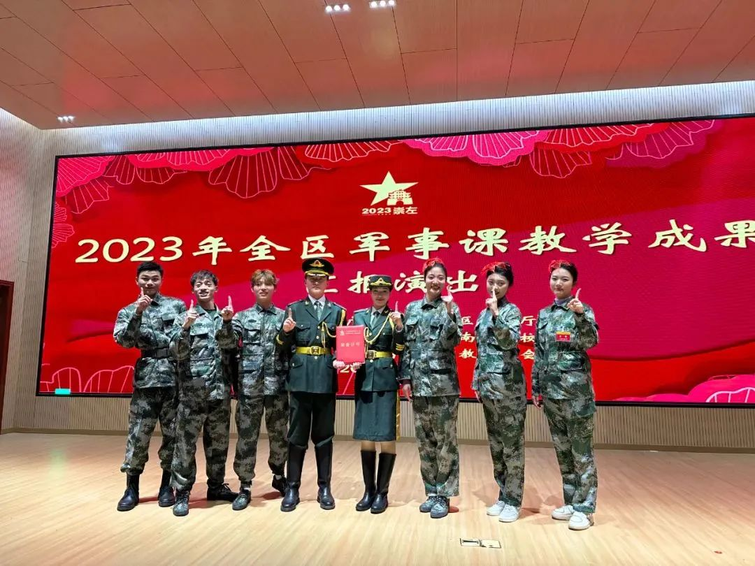 我校优秀学子在2023年全区军事课教学展示活动中荣获一等奖。12月18日至22日,2023年全区军事课教学展示活动在桂林理工大学南宁分校空港校区举行。经顽强拼搏,激烈角逐,我校代表队在众多参赛队伍中脱颖而出,荣获一等奖。
