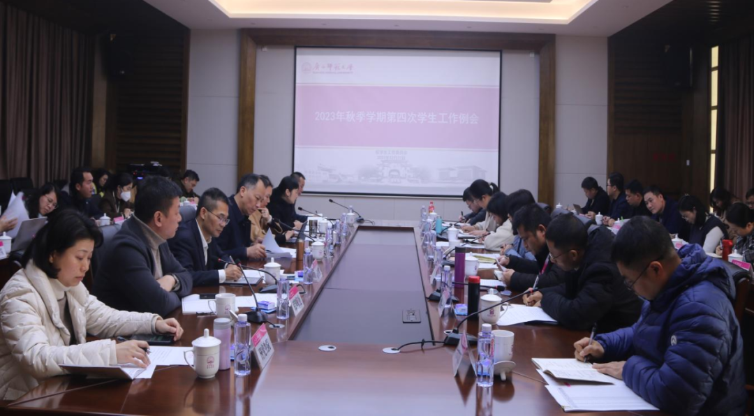 组织召开2023年秋季学期第四次学生工作例会。12月27日,我校在雁山校区第四会议室召开2023年秋季学期第四次学生工作例会,校党委副书记旷永青出席并主持会议。学生工作部(处)、党委研究生工作部、武装部/保卫处、校团委、财务处分别研究布置学生期末及假期管理、冬季征兵、期末安全宣传教育、防范电信诈骗、“第二课堂成绩单”修满学分、学生收费、期末及假期管理等相关工作事宜,教务处、后勤保障处/后勤服务集团等部门也就岁末年初的学生重点工作进行了交流。