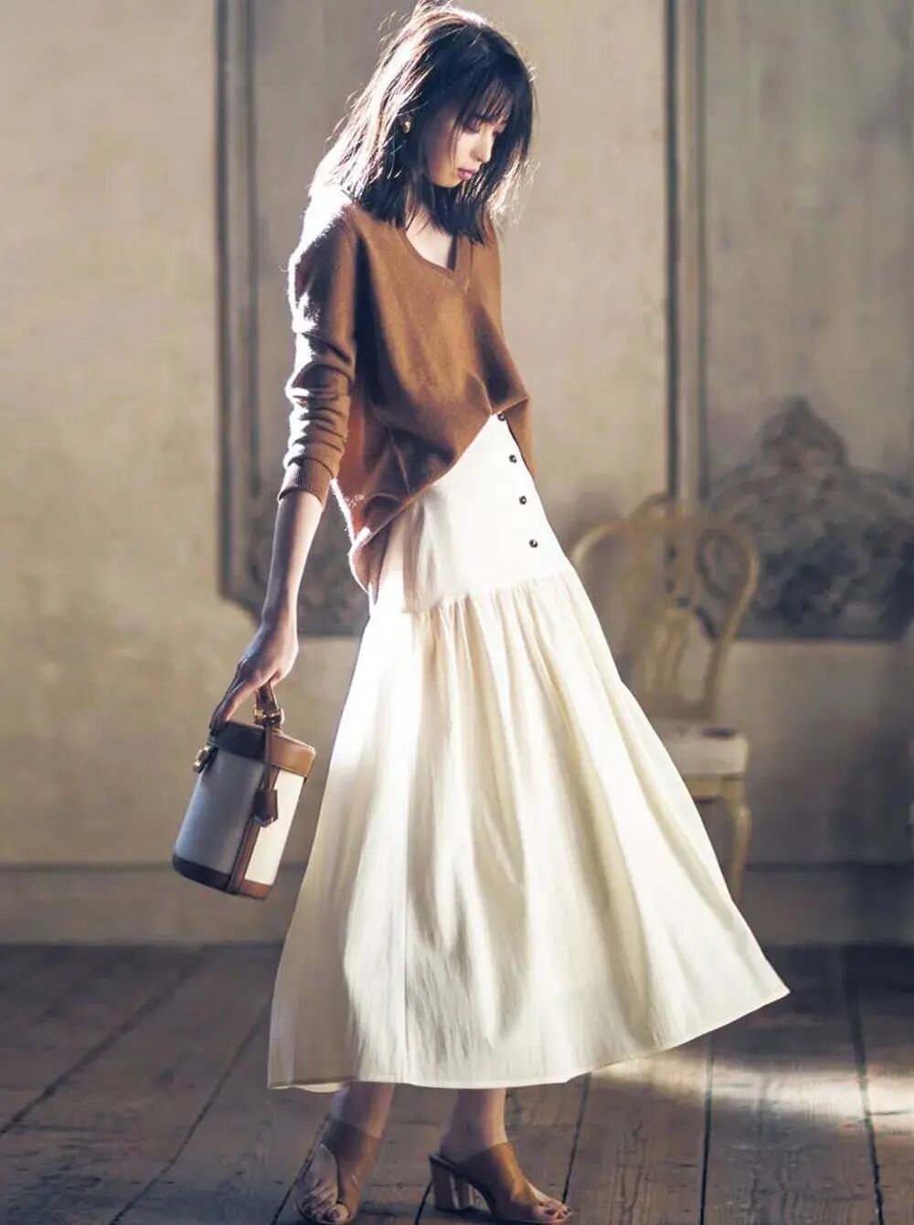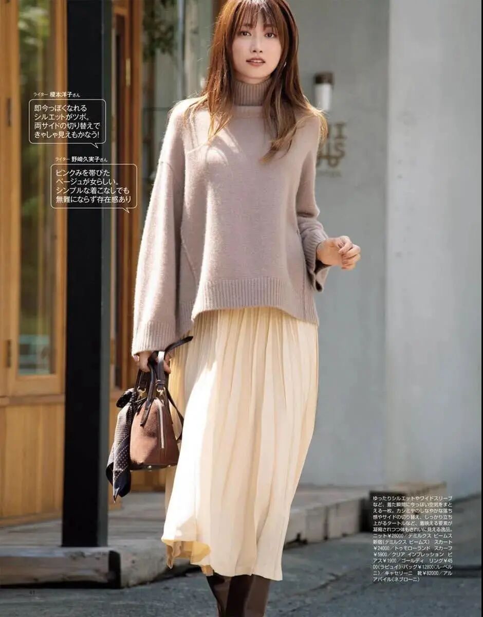 穿裙子、显浪漫,3种“毛衣+半身裙”穿搭解析,穿对风格才优雅