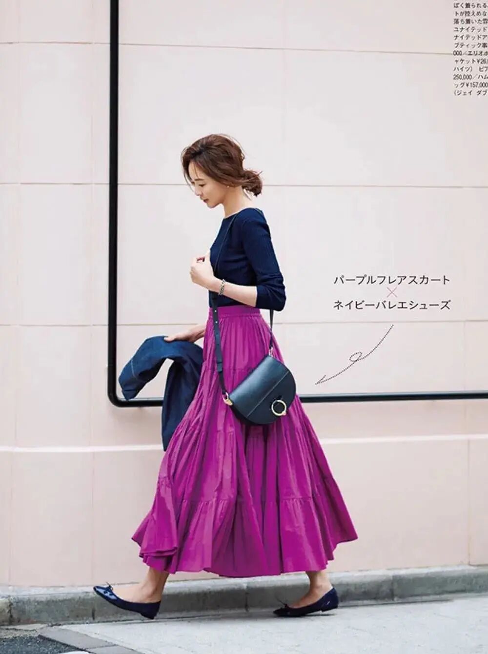 毛衣或针织衫素净淡雅,搭配的半身裙尽可能明媚风光。在素雅与明艳的对比中,反衬出优雅的时髦气色。春天,总要有点与众不同。