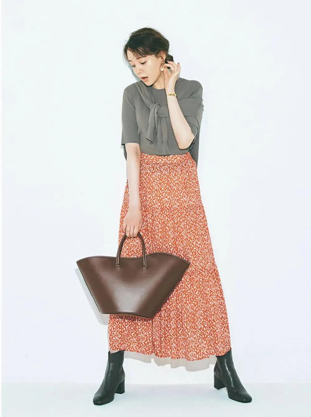 与初春时需要与温度较量的拿捏不同,盛春时的毛衣+半身裙,明显更加任性与潇洒,但还是有不少穿搭技巧需要斟酌。↓