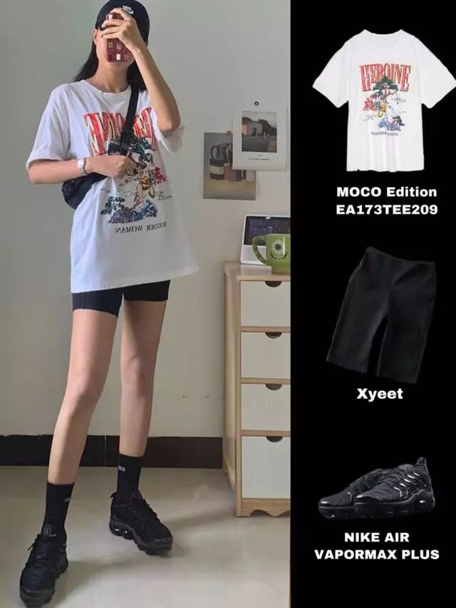 下半身消失装,今年不同的地方是搭配了运动单车裤,增加了运动帅气感,又显腿长