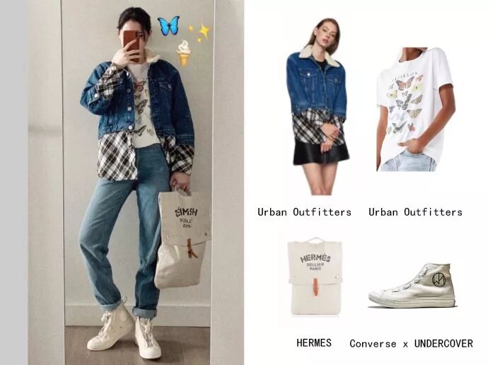 可爱的Urban Outfitter蝴蝶Tee搭配同品牌牛仔裤,