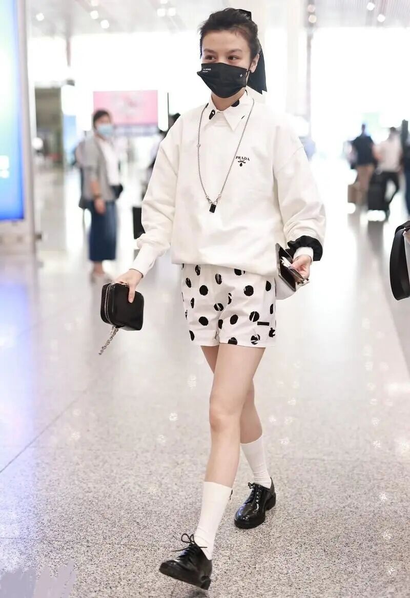 白袜子是最近非常流行的一个单品,感觉时尚的姑娘们不管穿什么鞋都要穿双白袜子。上图美女春夏穿的这个就很典型。她穿一件白色上衣配白色波点短裤,脚上穿双黑色的平跟皮鞋,再穿双白色的中筒裤子。在时尚帅气时带点复古的韵味。