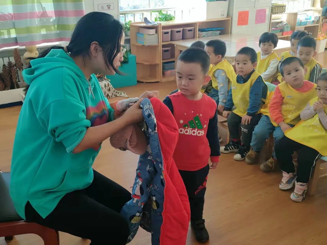 到了12月,天气越来越冷,随之而来的孩子们衣服也越来越厚,穿脱对小班的孩子来说是个不小的挑战,正值我们的主题为暖暖的冬天,那就开展一次穿衣大赛吧。