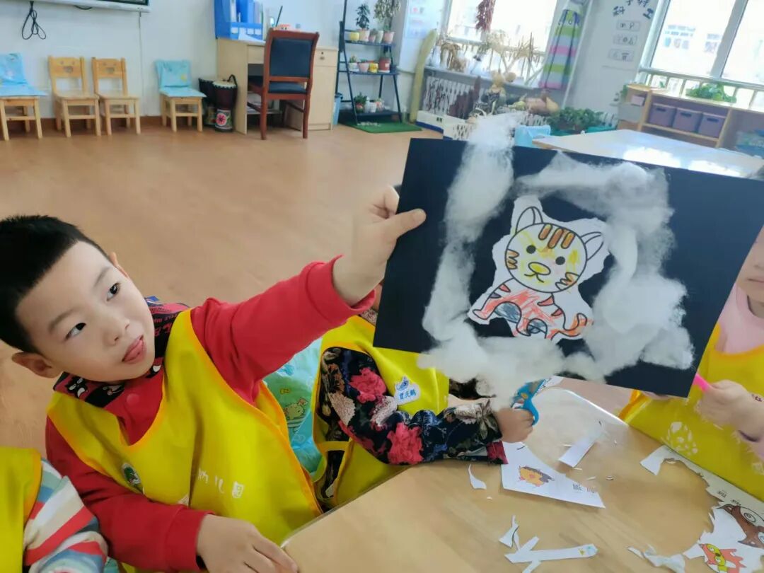 教师向孩子介绍了蒜皮的功能作用,又进行了蒜皮粘贴画。本节课锻炼了孩子的动手能力,幼儿发挥想象进行画面设计。