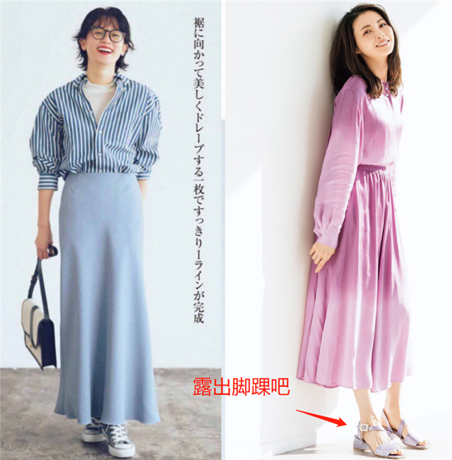 虽然是长裙,但是在搭配的时候也要注意细节的设计,重视长度的选择,针对大部分女性来说,更推荐你们把自己的脚踝露出来,尤其是春夏季节,露出脚踝的显瘦效果也会更好。