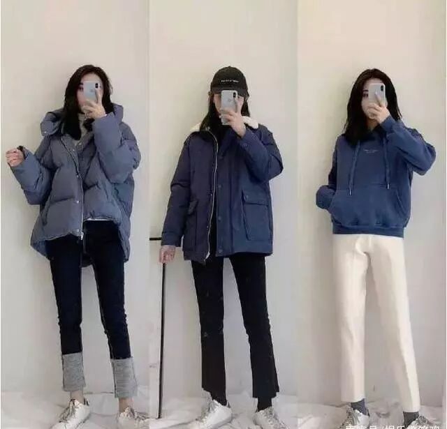 雾霾蓝色一直都是小编比较喜欢的一种颜色,雾霾懒得棉服或者卫衣都是近几年的爆款,棉服搭配一条双色牛仔裤,潮流又时尚,或者搭配一条黑色直筒裤,也是不会出错的装扮哟,如果是卫衣的话,可以像小姐姐一样搭配一条白色萝卜裤,不仅时尚感十足还不容易撞衫。