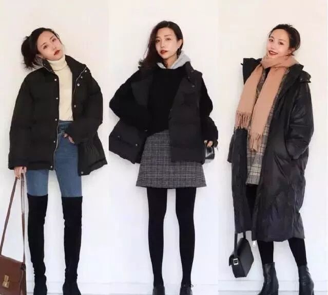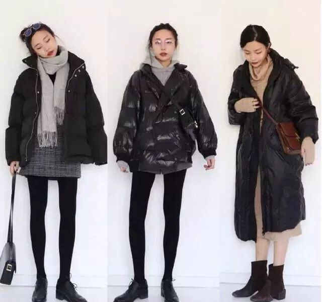黑色棉服大概是人手必备的一件衣服了吧,虽然没什么出彩的地方,但是用它来搭配衣服可以说是万能搭配了。无论内搭是浅色系的还是深色系的,不管是毛衣还是卫衣都会让人觉得非常潮流,不过像图中小姐姐一样搭配长筒靴虽然非常有气场,但还是需要有一定勇气的哟。