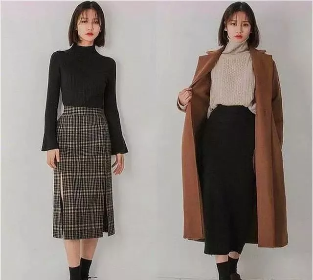 谁说穿裙子是夏天的专属福利?只要小仙女想穿什么时候都是可以穿的哟,黑色修身打底衣搭配长款格子裙,开叉的设计非常的有心机哟,再加上一双五公分的短腿靴,既显瘦又增高,出门再搭配一件纯色的大衣,简单又大方,还非常保暖哟。