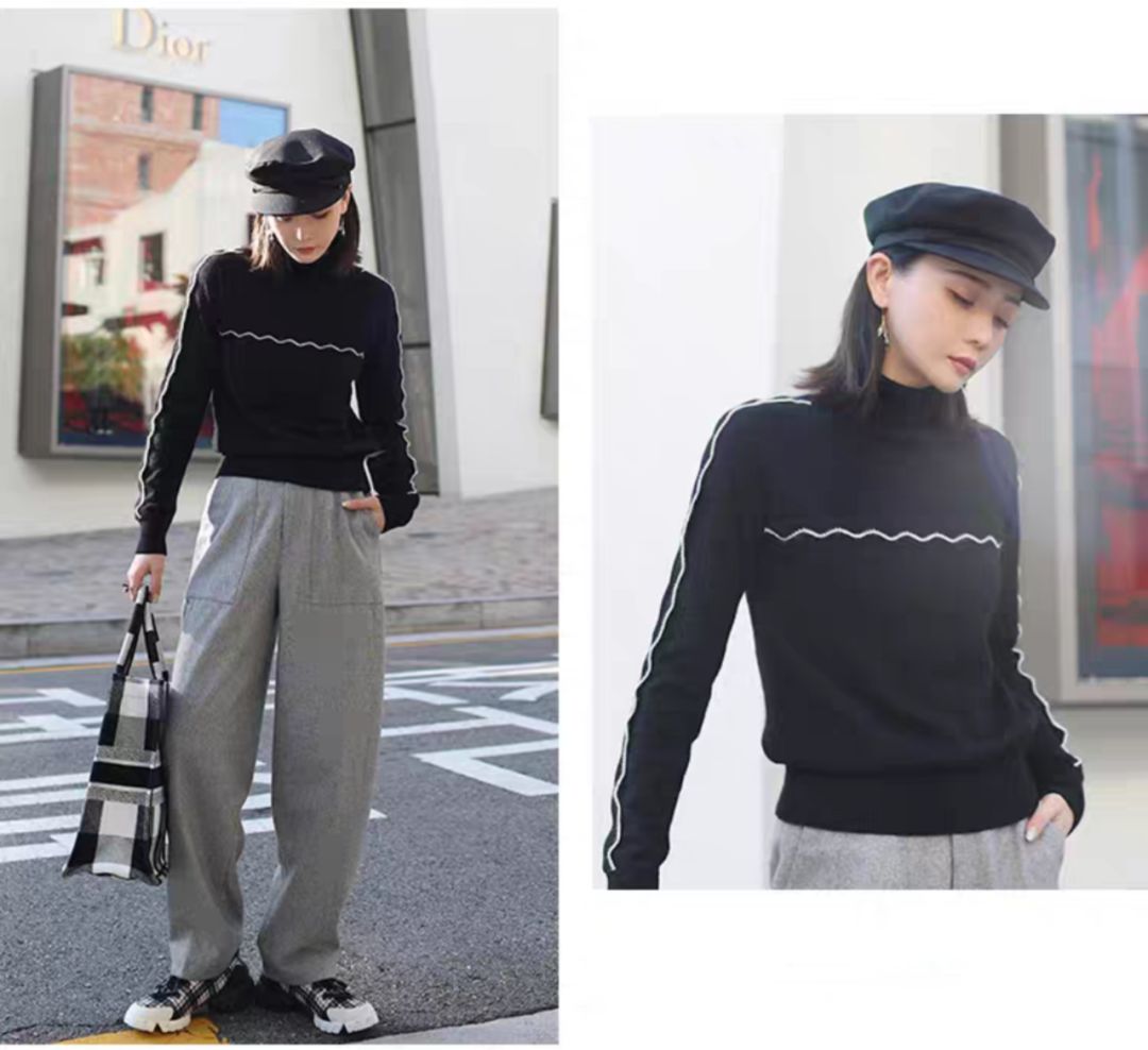 DAY2运动休闲贝雷帽+高领毛衣+运动裤体育课怕冷经常穿成熊想要轻装时尚却没头绪宽松的灰色长款运动裤搭配简约高龄毛衣既简单又时尚