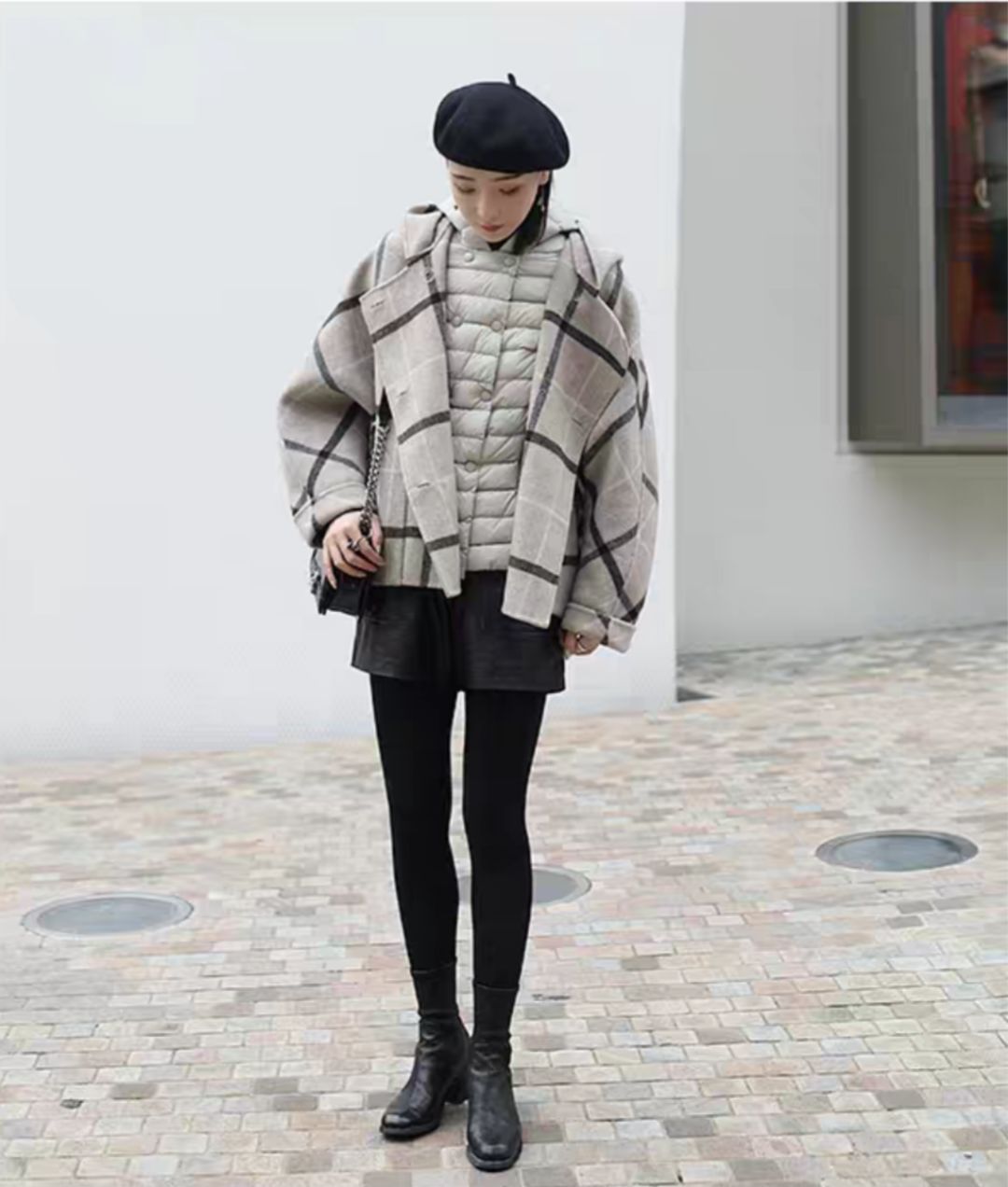 DAY7时髦达人羽绒服+卫衣+格子阔腿裤同样的格子裤穿搭率其实挺高的