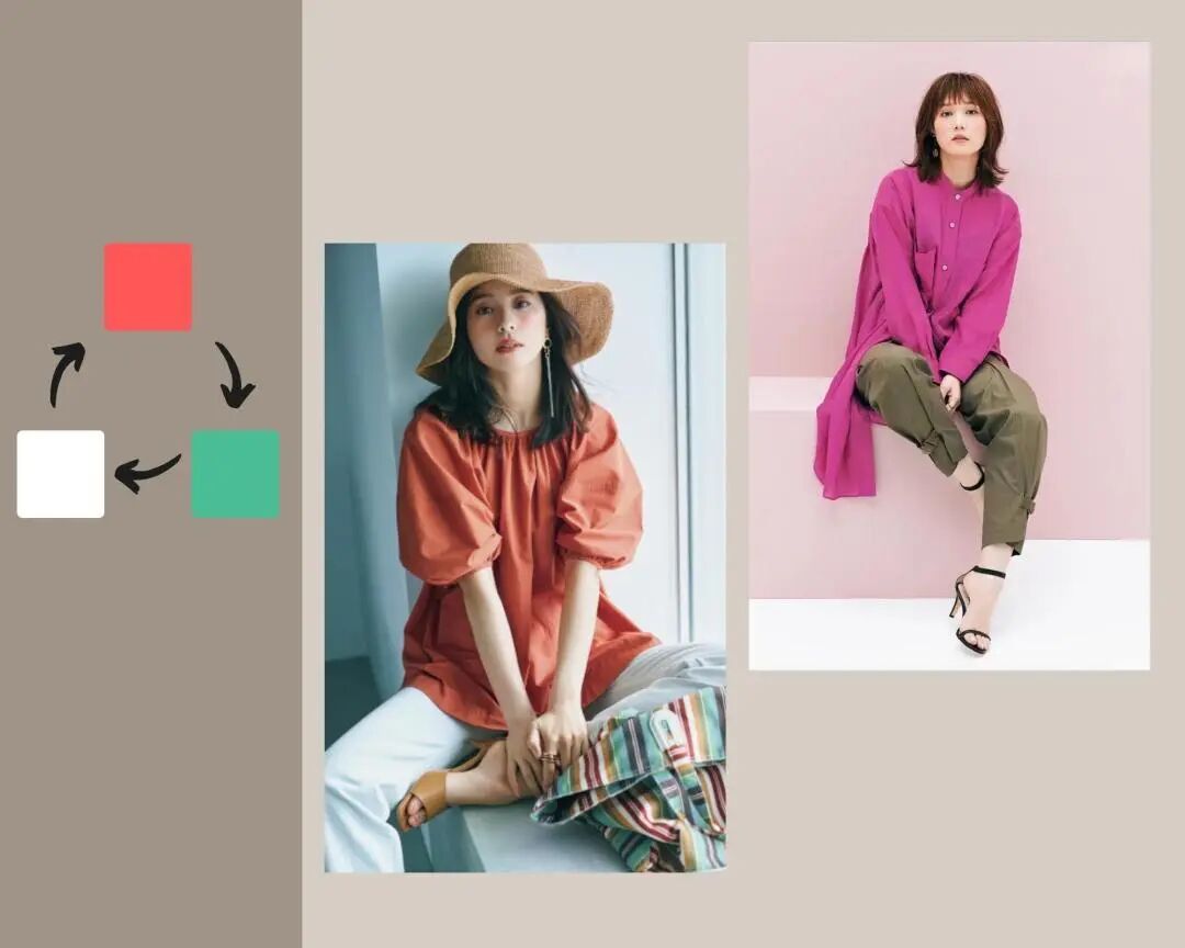 在整体穿搭中,色彩亦是要有主、次之分,色彩的搭配尽量不要超过三种颜色,可以按主次分别归为: