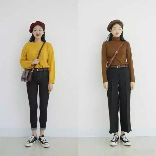 黑色小脚裤、阔腿裤也是最常见的学生党穿搭,来一件充满活力的黄色,让你元气满满。来一件干干净净的棕色,有点小轻熟感~