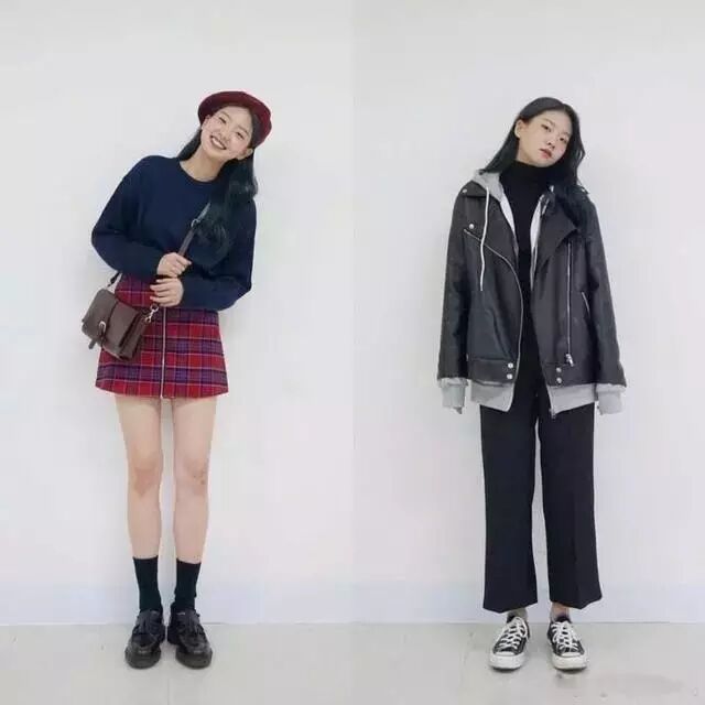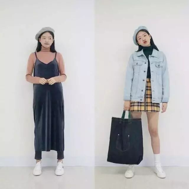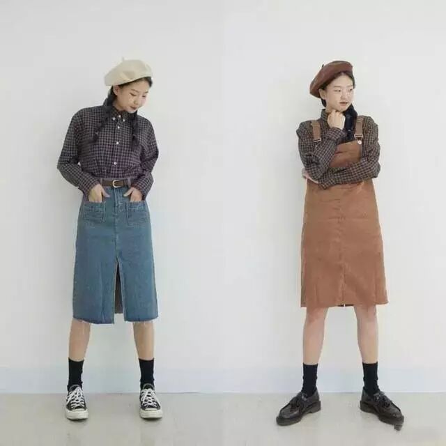 衬衫是学生党们几乎人手一件的单品,因为实在是太好穿太百搭了,而这个年龄刚好处在想要装成熟的时期,深色系的格子衬衫也就是她们的心头物了,牛仔裙的搭配休闲帅气,咖色背带裙显个子还能给人一种甜蜜感。