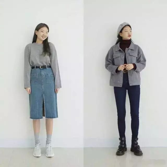 牛仔裙是较百搭的一件单品,选择一件好版型的牛仔裙,可以让你搭配好多单品!灰色外套搭配棕色内搭和深色牛仔,休闲感十足~